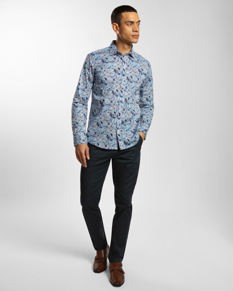Limited Edition Abstract Retro Print Stretch Shirt